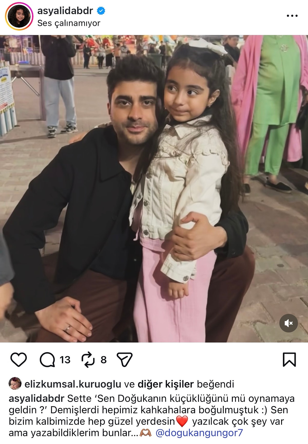 Детската актерка Асја Лида Бедир сподели фотографија со Догукан Гунгор и напиша: „На снимањето, ме прашаа: „Дали дојде да го играш помладиот дел од Догукан?“ и сите се расплакавме од смеа 🙂 Секогаш ќе имаш посебно место во нашите срца ❤️ Има толку многу за пишување, но ова е сè што можам да напишам…🫶🏽“